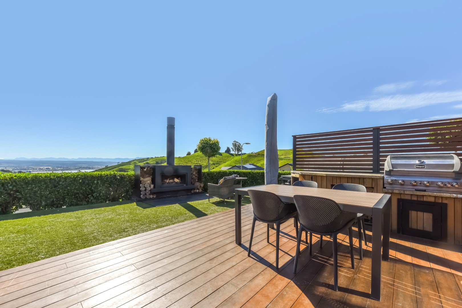 Outdoor living is designed to impress, with stunning privacy, built-in BBQ facilities (including a fridge), and a feature fireplace that doubles as a cooking station. Beautifully landscaped, the property boasts low-maintenance tiger turf lawns, a charming miniature orchard, and various sun-drenched or shaded spaces for relaxation.